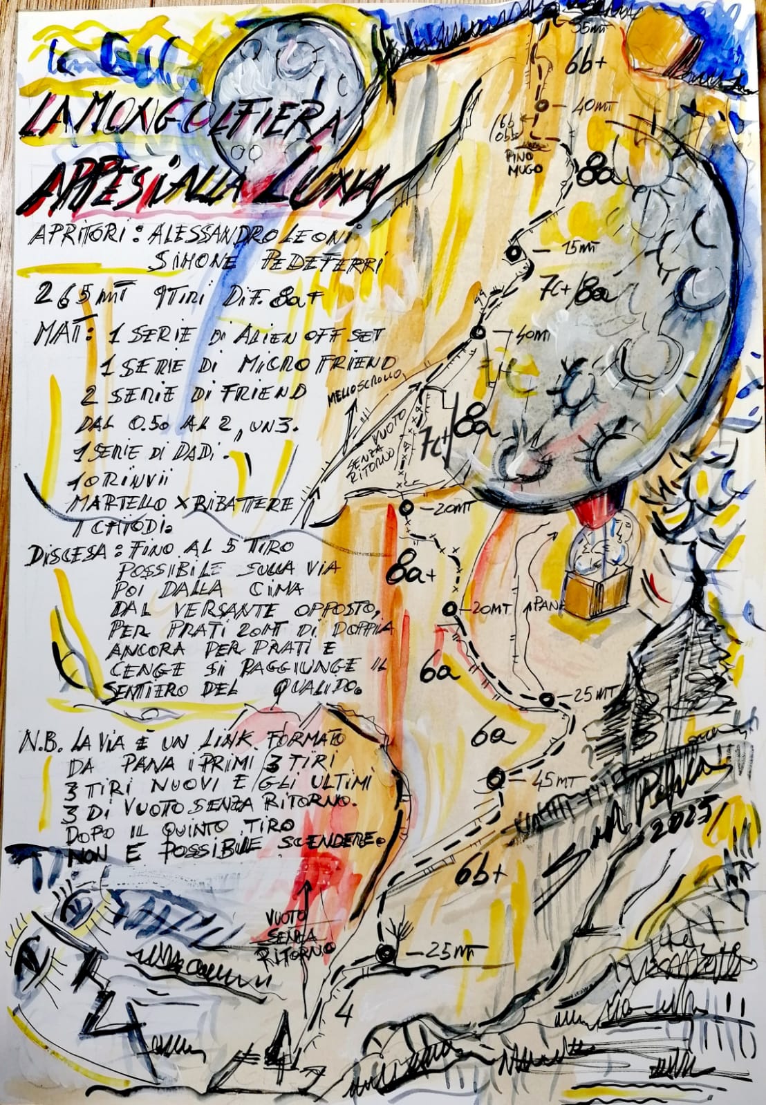 Disegno e arrampicata si fondono nello schizzo di Appesi alla luna @Simone Pedeferri