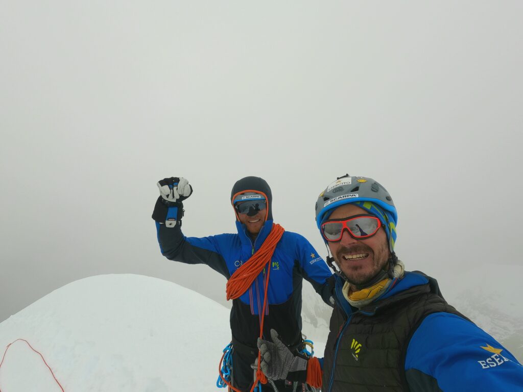 Matteo della Bordella (a destra) e Marco Majori (a sinistra) sulla vetta della Siula Grande