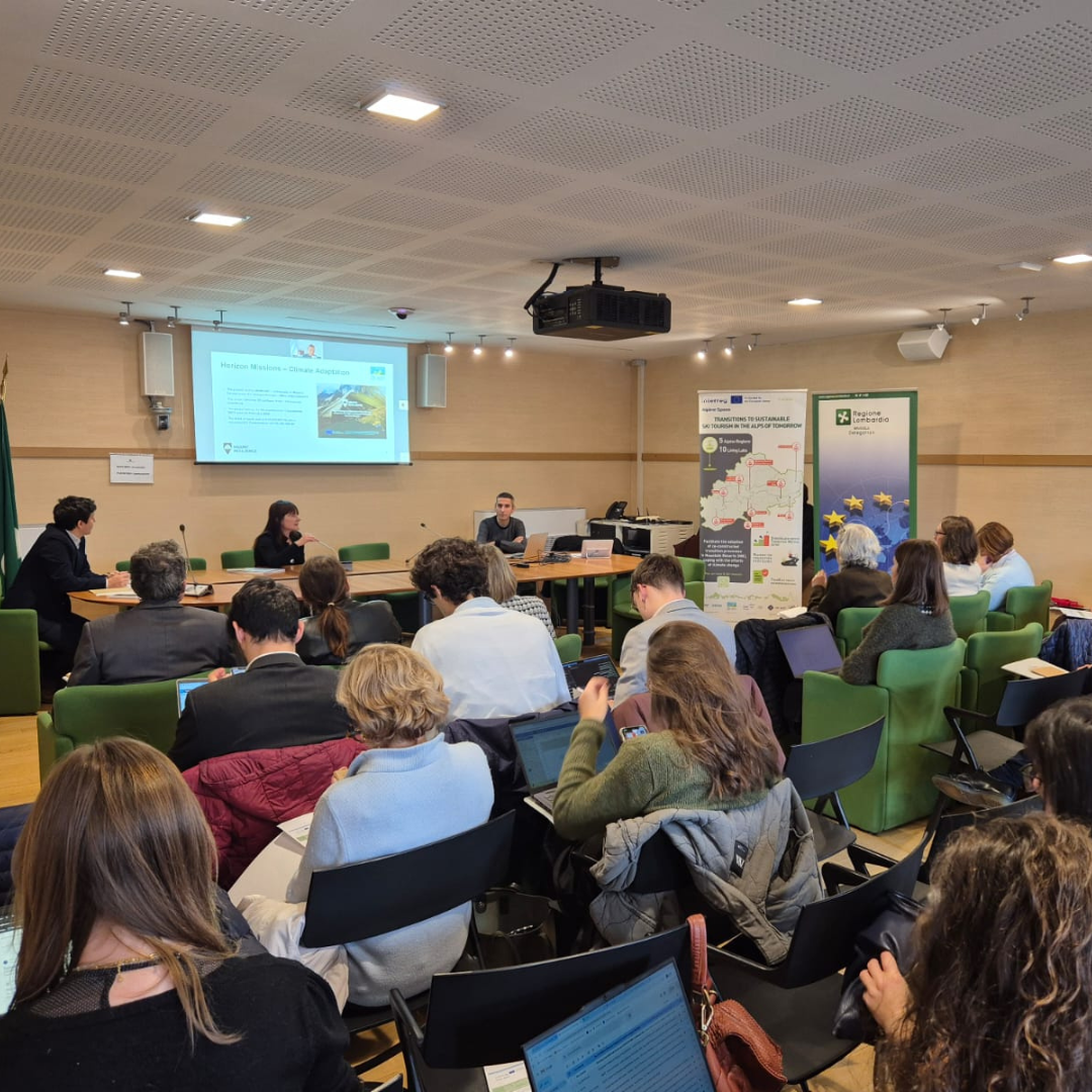 La mattinata è proseguita con la presentazione dei principali risultati del progetto e delle raccomandazioni politiche, a cura di Emmanuelle George (INRAE) e Marusa Goluza (Research Centre of the Slovenian Academy of Sciences and Arts). Le linee guida emerse mirano a promuovere modelli di sviluppo turistico più resilienti, inclusivi e sostenibili, capaci di rispondere alle sfide poste dal cambiamento climatico e dalle trasformazioni economiche e sociali delle aree alpine.
