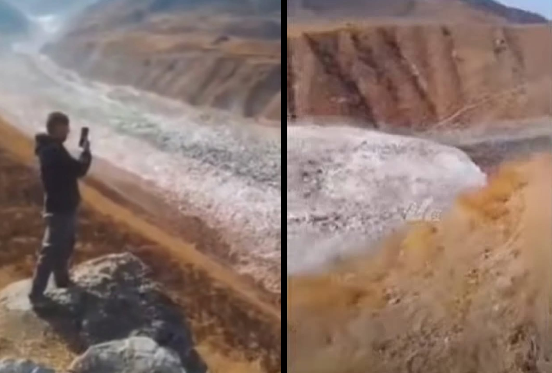 Alcune immagini del distaccoUn boato assordante ha squarciato il silenzio delle montagne del Pamir nella tarda mattinata del 25 ottobre. Un’enorme porzione del ghiacciaio che si trova alle pendici del Picco Ismail Samani, la vetta più alta del Tagikistan con i suoi 7495 metri, si è improvvisamente staccata, precipitando per chilometri lungo una gola remota nel distretto orientale di Tajikabad.