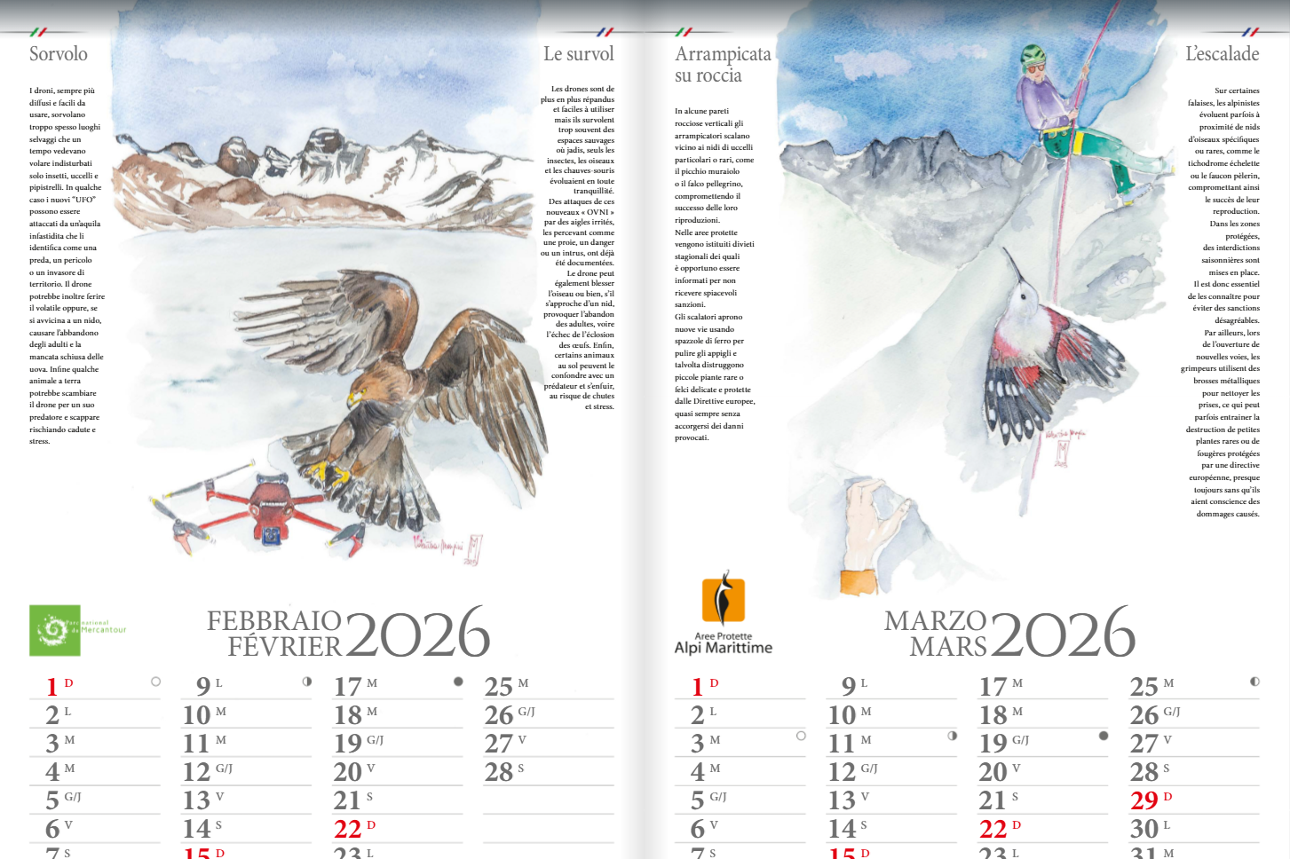 Il calendario BiodivTourAlps 2026 può essere sfogliato integralmente e richiesto in copia presso le sedi delle Aree Protette Alpi Marittime.
