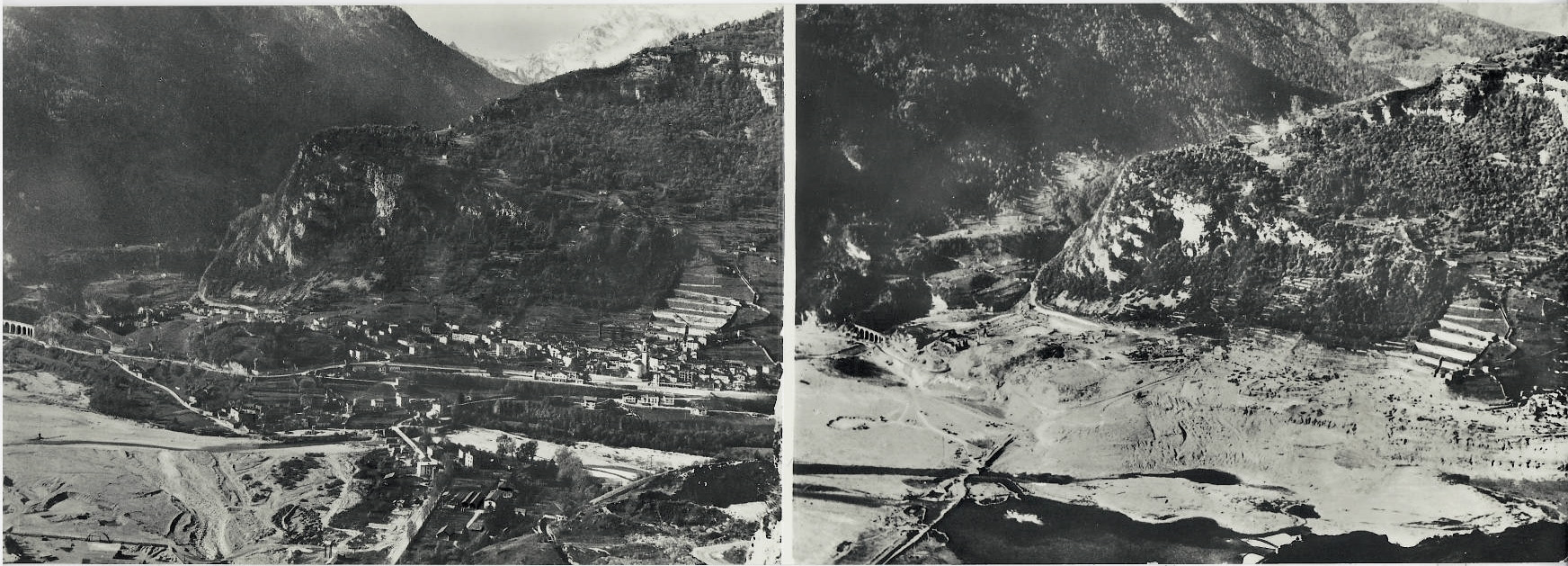 Già nel 1960 una frana di proporzioni minori aveva fatto emergere dubbi sulla sicurezza dell’invaso e sulla stabilità dei versanti. Ma, nonostante le relazioni geologiche avessero segnalato i rischi, si decise di continuare i lavori e di collaudare la diga. Il 9 ottobre 1963, alle 22:39, 270 milioni di metri cubi di roccia scivolarono nel lago artificiale, sollevando un’onda che superò di oltre 200 metri la sommità della diga. L’acqua travolse Longarone e i paesi circostanti. In meno di quattro minuti la valle fu cancellata.
