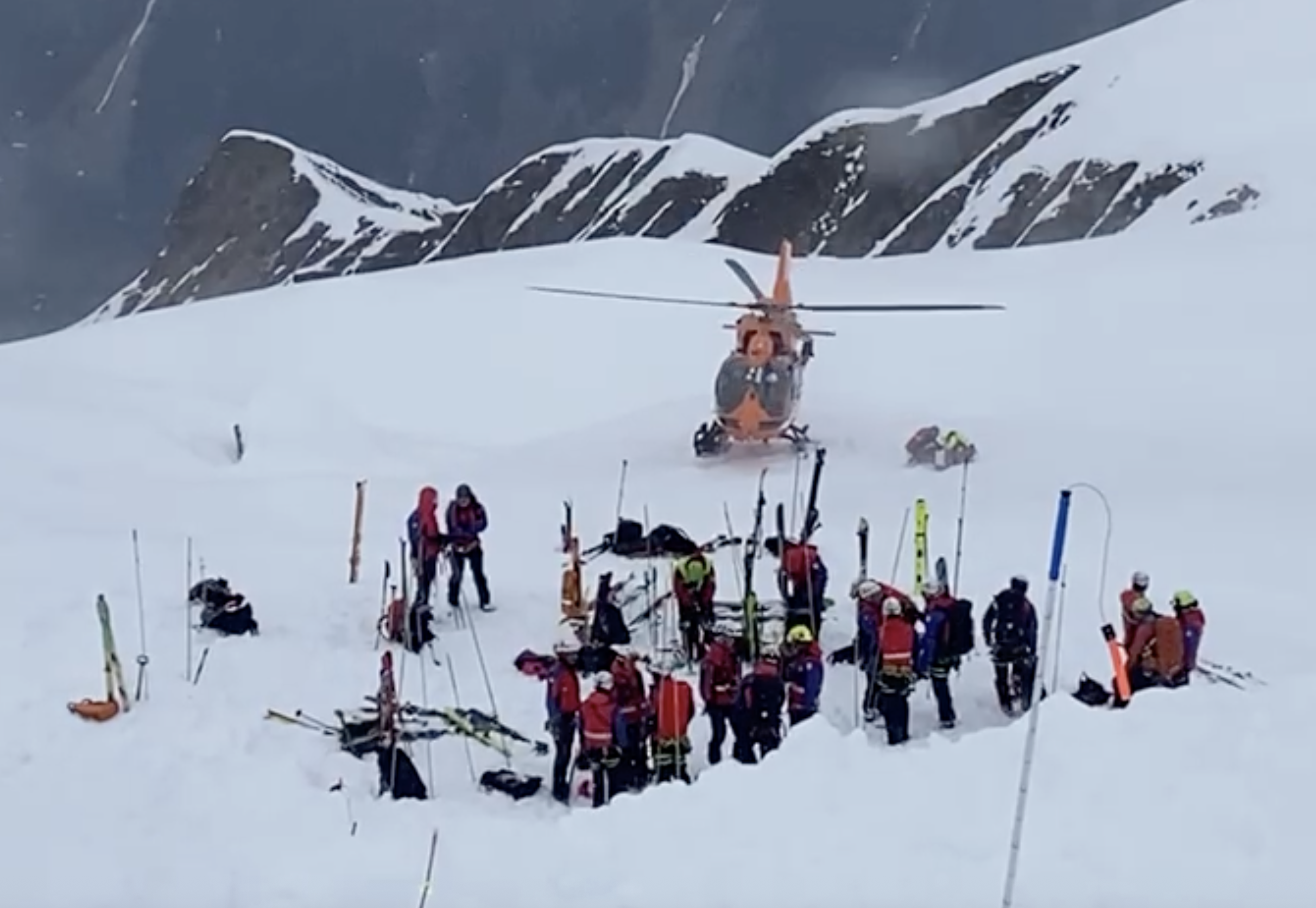 I soccorsi sono stati imponenti, con oltre 50 persone impegnate e 6 elicotteri in volo. Al Soccorso Alpino e al Bergrettungsdienst si sono aggiunti sul campo la Guardia di finanza e personale della Croce Bianca.A quanto pare, tutti gli scialpinisti travolti erano stati equipaggiati con un dispositivo sonoro per la localizzazione. Nei filmati si possono vedere i soccorritori che ispezionano il terreno con le sonde per trovare i dispersi e le unità cinofile al lavoro per offrire il massimo supporto.