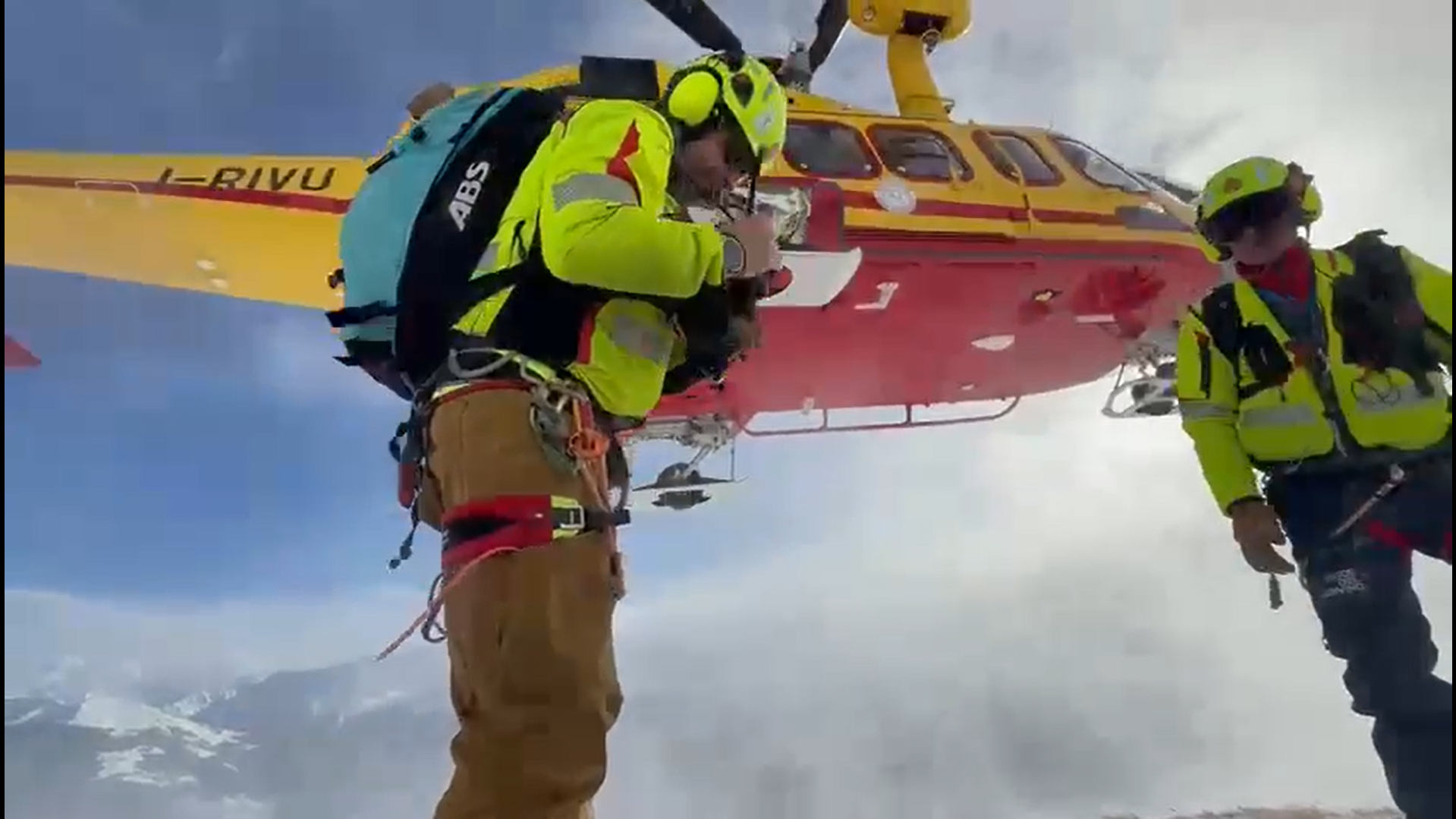 L’elicottero non è riuscito a raggiungere direttamente il punto esatto dell’evento. Otto soccorritori – tecnici del SAV, militari del Sagf, un medico e un’unità cinofila – sono stati quindi sbarcati circa 500 metri più in basso e hanno proseguito l’intervento con tecnica scialpinistica, avanzando in condizioni ambientali critiche.
