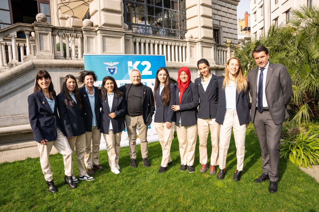 Le componenti delle spedizione con Antonio Montani e Agostino da Polenza, in occasione della presentazione del progetto k2-70 a MilanoLe alpiniste? Da quel che ho capito, parlando con loro, pensano tutte a una esperienza forte e importante, da interpretare ognuna con motivazioni proprie. Ma sono certo che tutte vogliano arrivare in vetta e che per farlo si daranno una mano. L’ho sempre visto fare. La qualità tecnica è molto diversa tra loro, alcune sono formidabili arrampicatrici e guide alpine, altre alpiniste di lunga esperienza. Le tre giovani pakistane (una diciannovenne) pur avendo esperienza di salite su montagne di 5 e 6000 metri, sono forti e determinate e hanno un livello di volontà, capacità e resistenza alla fatica elevato ma, devono “ancora imparare”. Si ritroveranno a maggio sulle montagne del Pakistan, con Maurizio Gallo, la guida Michele Cucchi e Samina Baig, per una nuova settimana di formazione tecnica. Non è la prima spedizione di donne che parte per il K2, speriamo però che sia la prima ad arrivare in vetta. Come dimenticare quella voluta e guidata dalla grande amica Wanda Rutkiewicz nel 1982. Con Wanda, nel 1986, sono sceso dal campo 3 del K2 in una tormenta di violenza inaudita che aveva ucciso il giorno prima i suoi compagni di vetta: i coniugi Barrard. Al campo base con Wanda e Kurt Diemberger, l’ultimo in vita ad aver raggiunto in prima assoluta la vetta di due Ottomila, passammo lunghe ore a raccontare di alpinismo. Semplicemente la nostra è la prima spedizione anche con alpiniste pakistane, a Wanda sarebbe molto piaciuta.