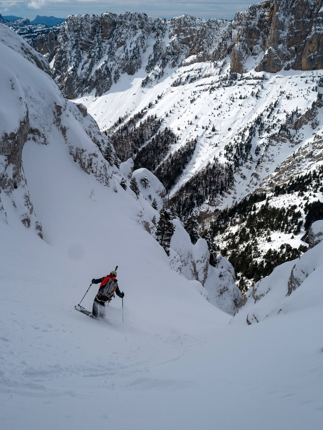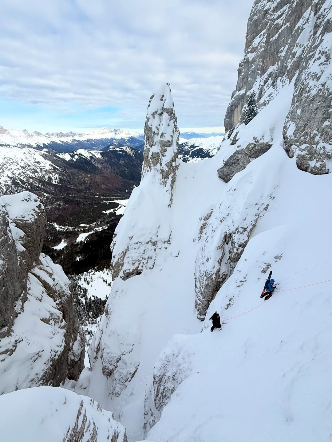 Faccio sempre più sci ripido, anche perché non ci sono più condizioni così durature nell'ice climbing e quindi mi rivolgo ad altro. Quella linea la volevo fare da molto tempo. È stata molto difficile la salita. In estate è una via di quarto grado, ma noi abbiamo trovato erba ghiacciata e non era semplice usare le protezioni, abbiamo dovuto rinunciare più e più volte. La discesa è stata bellissima.