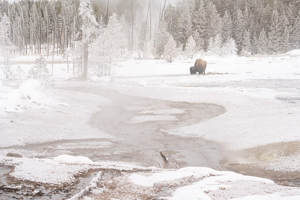 Un bisonte nei pressi dell'Echinus - Foto Yellowstone National Park - Wikimedia Commons, Public Domain