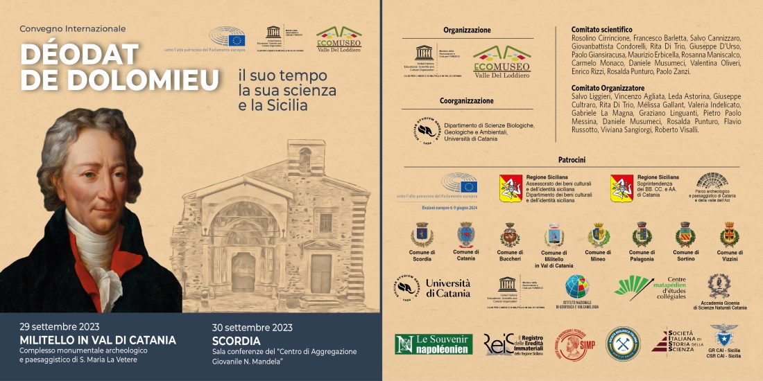 La locandina del convegnoIl Comitato scientifico della Cai Sicilia è tra gli organizzatori della due giorni di studi dedicata Déodat de Dolomieu, che si terrà venerdì 29 e sabato 30 settembre tra Militello e Scordia, in provincia di Catania.
