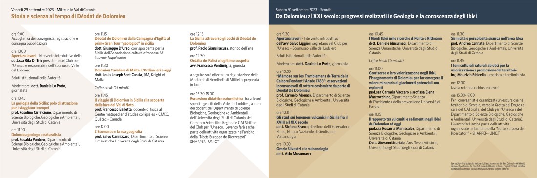 La prima giornata sarà dedicata a “Storia e scienza ai tempi di Déodat de Dolomieu”, la seconda a “Da Dolomieu al XXI secolo: progressi realizzati in Geologia e la conoscenza degli “Iblei”.