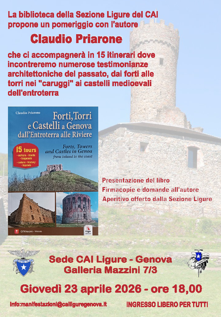 Protagonista dell’appuntamento sarà Claudio Priarone, autore del libro, che accompagnerà il pubblico alla scoperta dei contenuti della guida, rispondendo alle curiosità dei presenti. A seguire, un momento conviviale con un aperitivo offerto dalla Sezione Ligure.