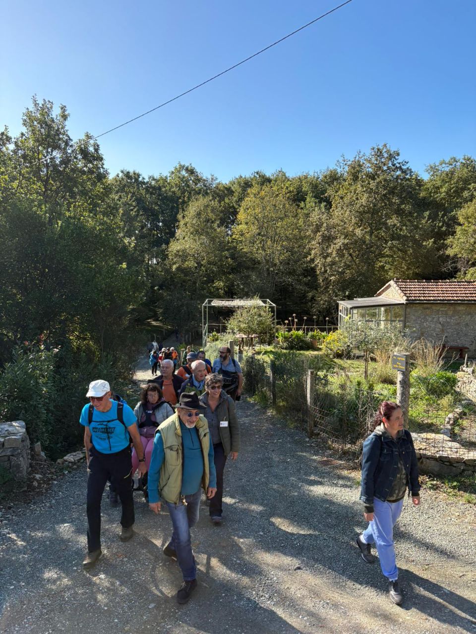 Il cammino si è concluso presso l’Azienda Agricola Pian della Chiesa, dove il proprietario Ottavio ha accolto i partecipanti con grande ospitalità, offrendo un ricco buffet in collaborazione con la Fondazione Pro Monte Caprione. Il rientro è avvenuto lungo il sentiero 411/AVG, chiudendo l’anello escursionistico.