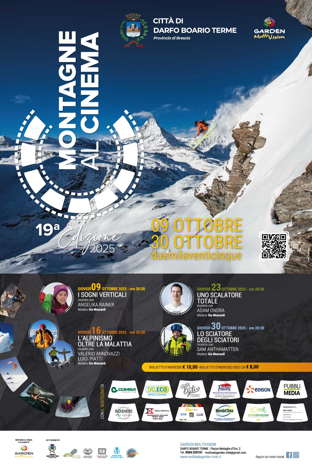 Dal 9 al 30 ottobre 2025 Montagne al Cinema ha portato al Garden Multivision di Darfo Boario Terme quattro serate dense di storie e ispirazione. La rassegna, giunta alla sua 19ª edizione, si conferma un appuntamento atteso per chi ama la montagna e il cinema capace di raccontarla.