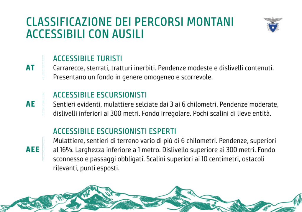 È compito del Club alpino italiano rilevare, mappare e classificare i percorsi in base alla difficoltà e alla loro manutenzione, anche nell’ottica della conservazione del grado di accessibilità riscontrato.